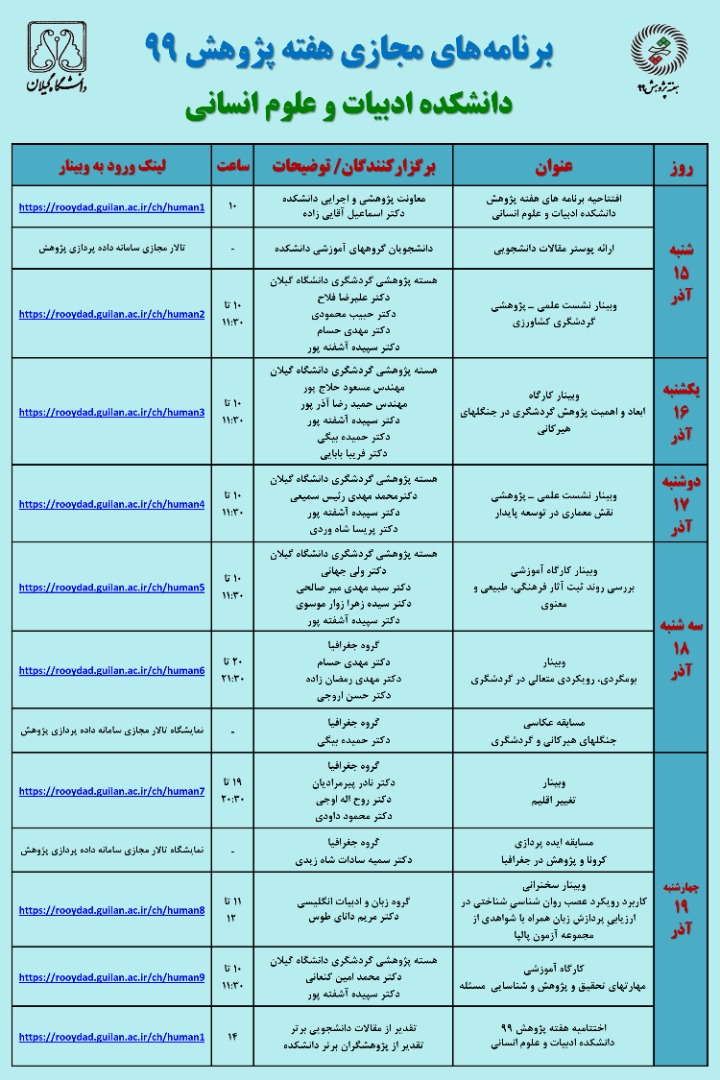 دانلود فهرست برنامه های مجازی دانشکده ادبیات و علوم انسانی در هفته پژوهش و