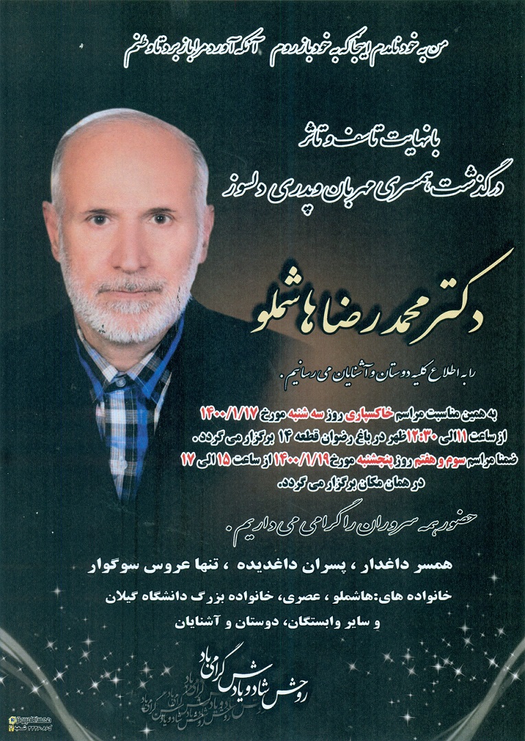 اطلاعیه مراسم خاکسپاری و مراسم سوم و هفتم آقای دکتر محمد رضا هاشملو