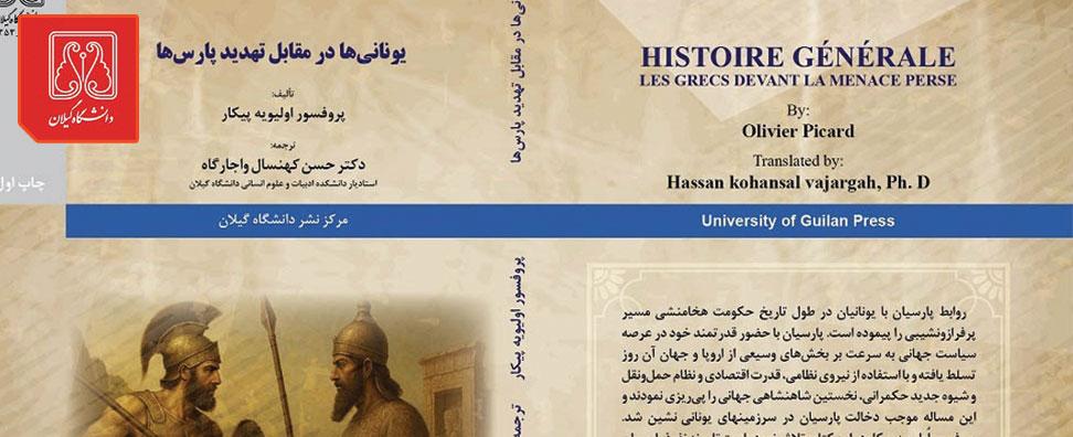 کتاب «یونانی‌ها در مقابل تهدید پارس‌ها» تألیف پروفسور اولیویه پیکار، توسط دکتر حسن کهنسال واجارگاه، عضو هیئت علمی گروه جغرافیا دانشکده ادبیات و علوم‌انسانی ترجمه شد. روابط ایران و یونان در دوره‌ی امپراتوری هخامنشی مسیری پر فراز و نشیب را پشت سر گذاشته است. پارس‌ها با حضور قدرتمند در عرصه‌ی سیاست جهانی، به‌سرعت بر بخش‌های وسیعی از اروپا و جهان آن روزگار تسلط یافتند و با بهره‌گیری از نیروی نظامی، توان اقتصادی و شیوه‌های نوین حکمرانی، پایه‌های یک شاهنشاهی جهانی را بنا نهادند. این گسترش قدرت، به‌طور طبیعی موجب دخالت آنان در سرزمین‌های یونانی‌نشین شد. در این کتاب، روند نفوذ پارس‌ها در مناطق یونانی‌نشین و تحولاتی که به جنگ‌های طولانی آنان با یونانی‌ها (موسوم به جنگ‌های مدیک) انجامید و همچنین میراث فرهنگی مشترک و تأثیرات متقابل تمدن‌های پارسی و یونانی مورد بررسی قرار گرفته است.