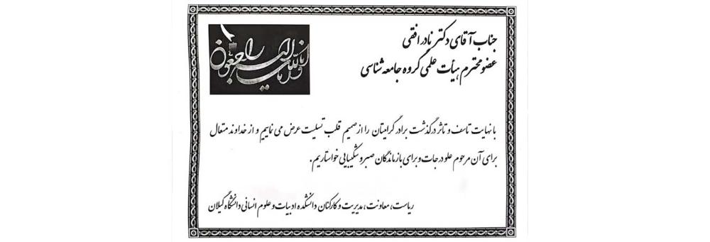 تسلیت به دکتر نادر افقی عضو هیأت علمی گروه جامعه شناسی