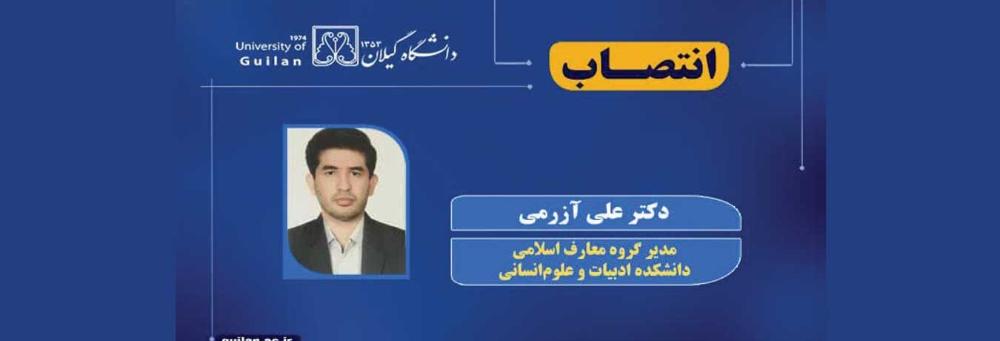 بنا به پیشنهاد سرپرست دانشکده ادبیات و علومانسانی و طی حکمی از سوی رئیس دانشگاه گیلان، دکتر علی آزرمی به مدت دو سال به سمت مدیر گروه معارف اسلامی منصوب شد.